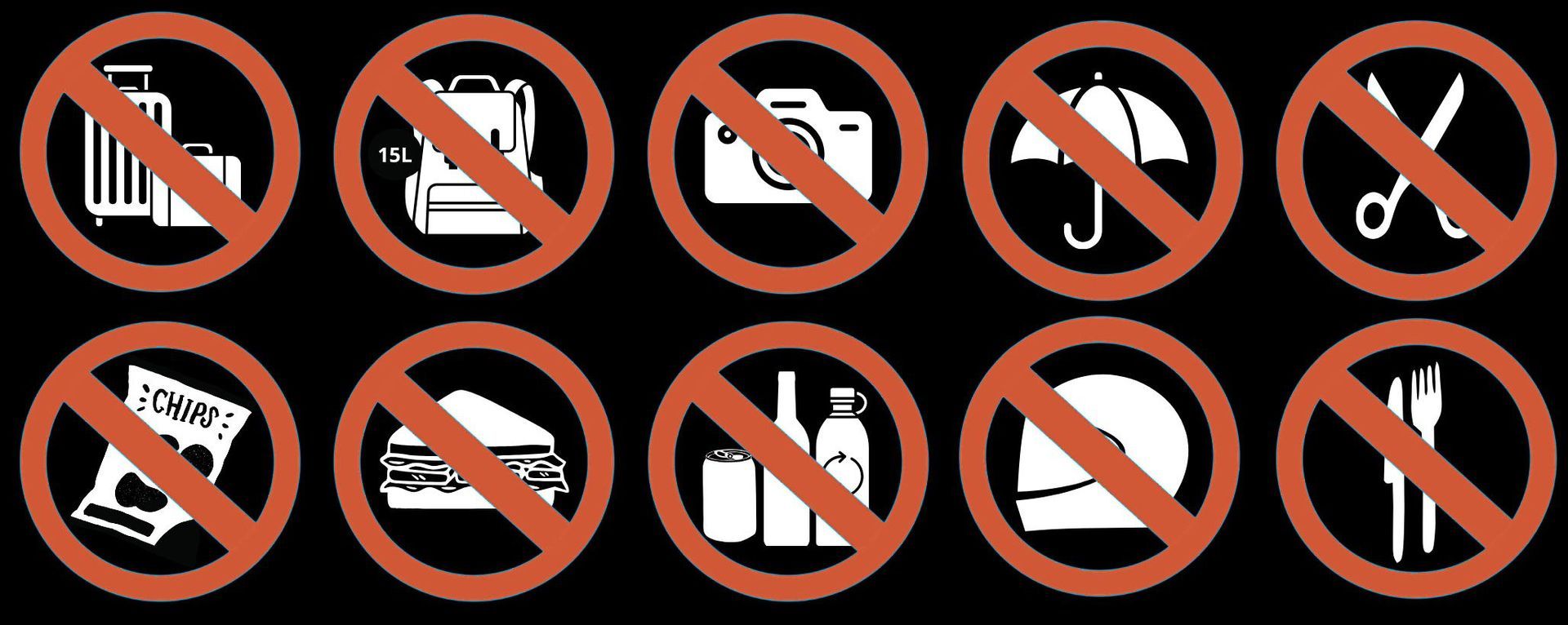 🎒 Grands sacs et valises : seuls les petits sacs (sacs à main, petits sacs à dos…) sont autorisés.